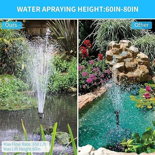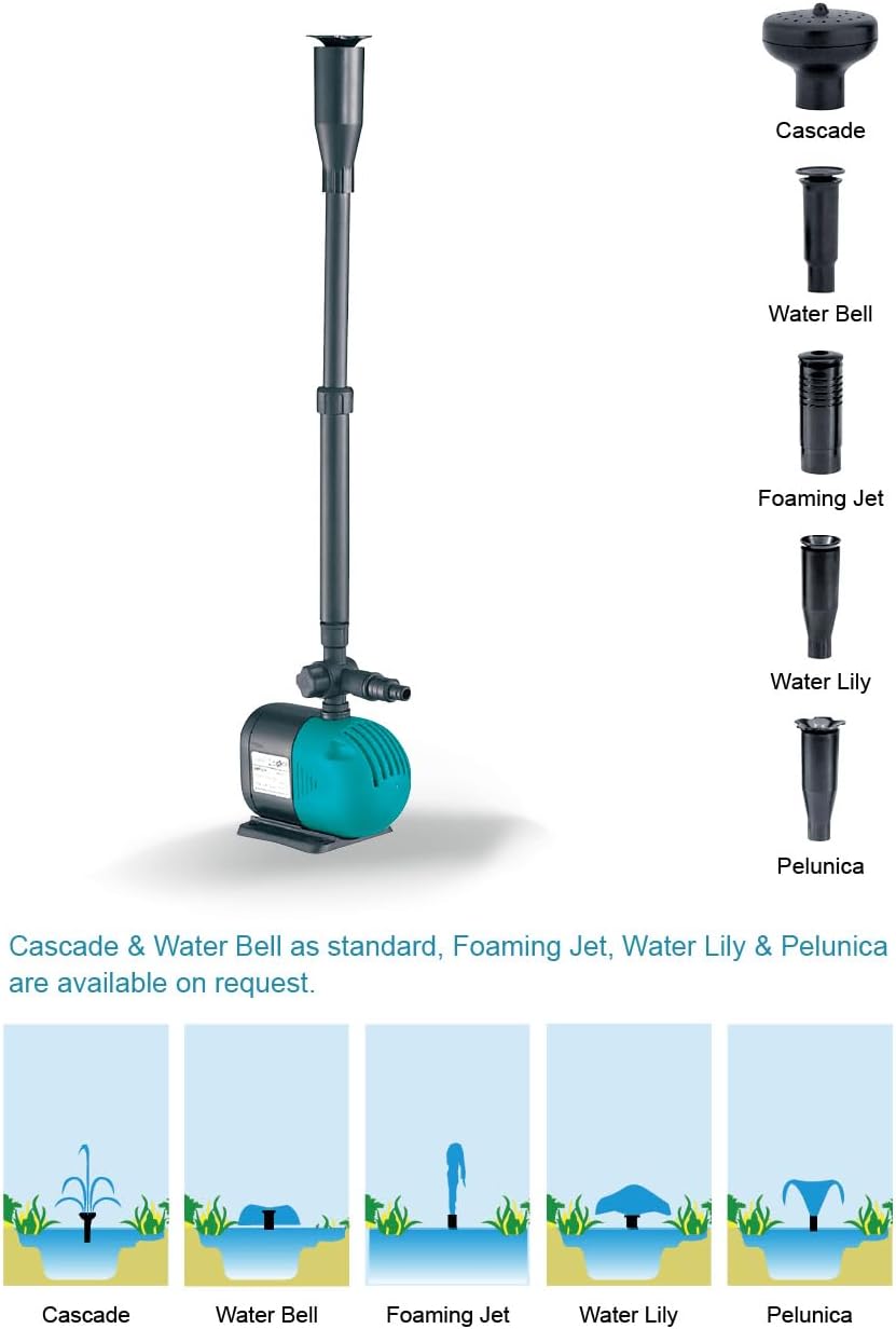 مضخة مياه غاطسة: تشير إلى طريقة عملها، حيث يجب أن تكون مغمورة بالكامل في الماء. مضخة نافورة: تؤكد على قدرتها على إنشاء تأثيرات نافورة. مضخة لحوض السمك/مضخة أكواريوم: أساسي استخدام لتربية الأسماك. مضخة بركة/مضخة برك حدائق: مناسبة لتطبيقات البرك الخارجية. مضخة نوافير: تستخدم للنوافير الزخرفية. تحسين جودة المياه: من خلال التهوية وتدوير المياه (خاصة في أحواض السمك والبرك). إضافة جمالية: لإنشاء نوافير وميزات مائية جذابة.